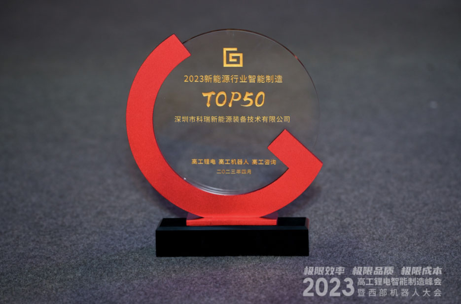 在當(dāng)晚發(fā)布的“2023新能源行業(yè)智能制造TOP50”榜單中,科瑞新能源榮譽(yù)其中: