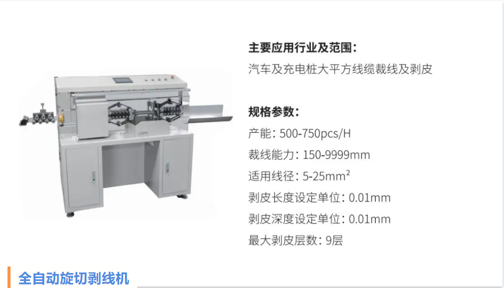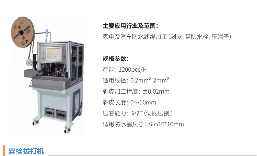 在典型設(shè)備應(yīng)用上,重點(diǎn)展示了用于汽車電子電氣系統(tǒng)的穿栓撥打機(jī)以及全自動(dòng)旋切剝線機(jī)。